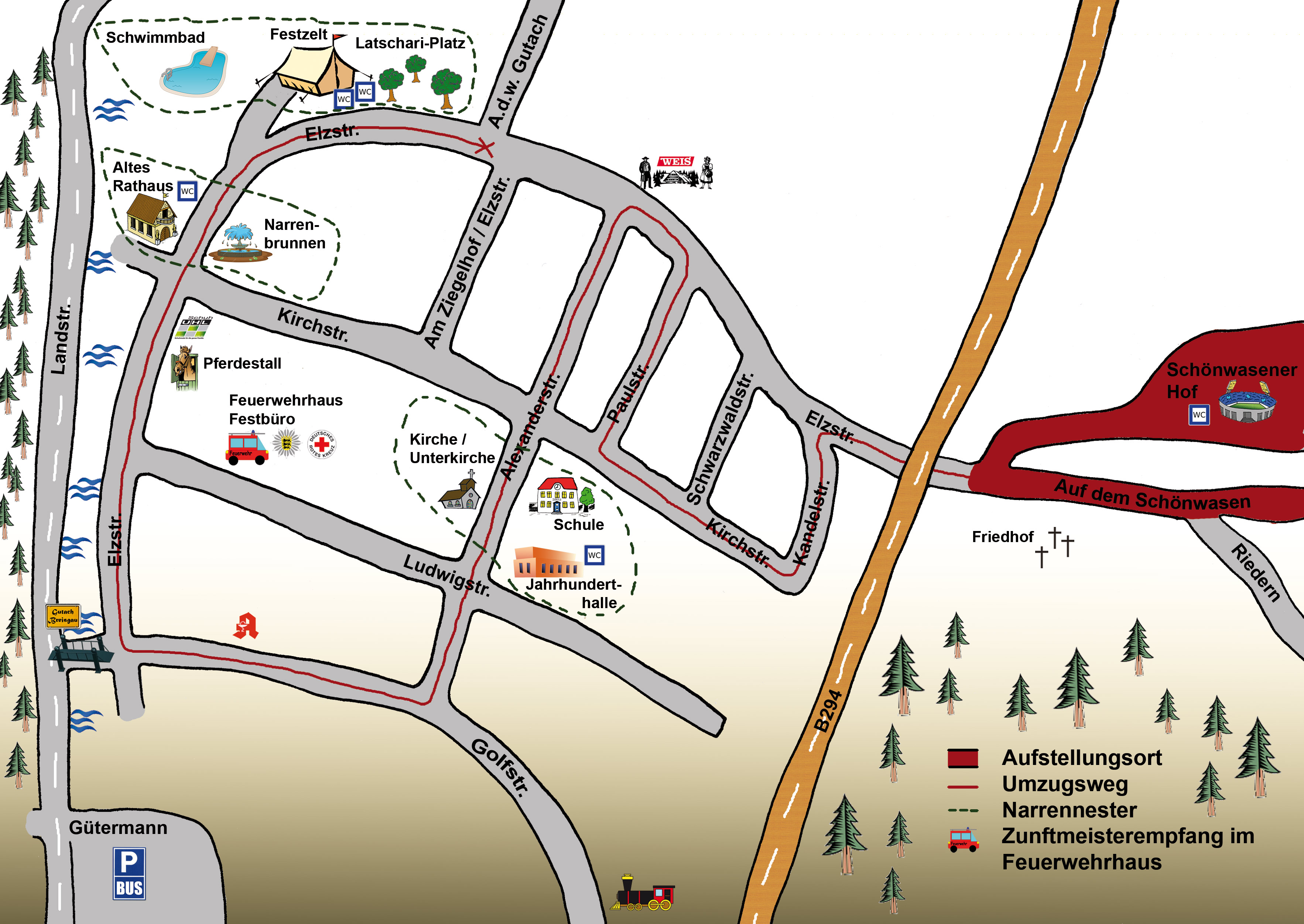 Busabfahrt 13:30 Uhr am Rathaus, damit alle genügend Zeit zum umziehen haben. Wir fahren direkt an die Umzugsaufstellung. Haben eine Sondergenehmigung von Gutach bekommen.